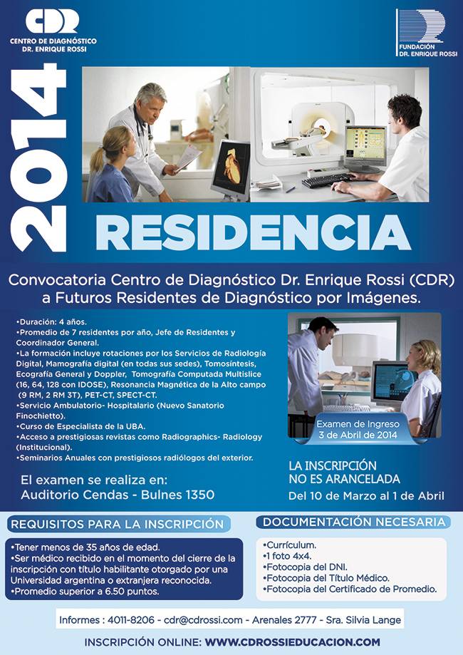 CONCURSO PARA RESIDENCIA MEDICA EN DIAGNOSTICO POR IMAGENES INFORMES E INSCRIPCION: A PARTIR DEL 17/2/2014 AL 28/03/2014 INCLUSIVEDE LUNES A