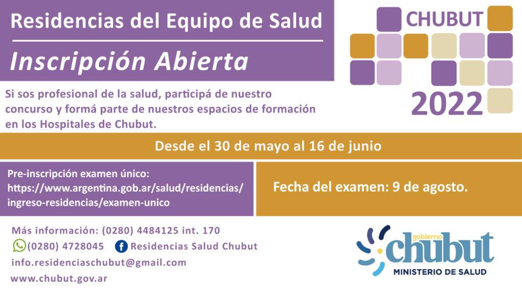 El Gobierno del Chubut, convoca a médicos/as y otros profesionales de la salud de todo el país, a participar del concurso para cubrir los 92 cargos disponibles en las “Residencias del Equipo de Salud de Chubut 2022”.