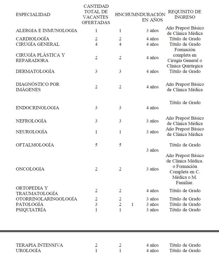 ALUMNOS EGRESADOS DE UNIVERSIDAD EXTRANJERA: En el caso de ser egresado de una Universidad Extranjera deberá presentar la siguiente documentación: 1) Resolución de Reválida del título de Médico en Argentina 2) Si la escala de promedio es distinta de 1 a 10 certificado de conversión de promedio a esta escala emitido por la Universidad de Origen. Toda la documentación será presentada en formato PDF