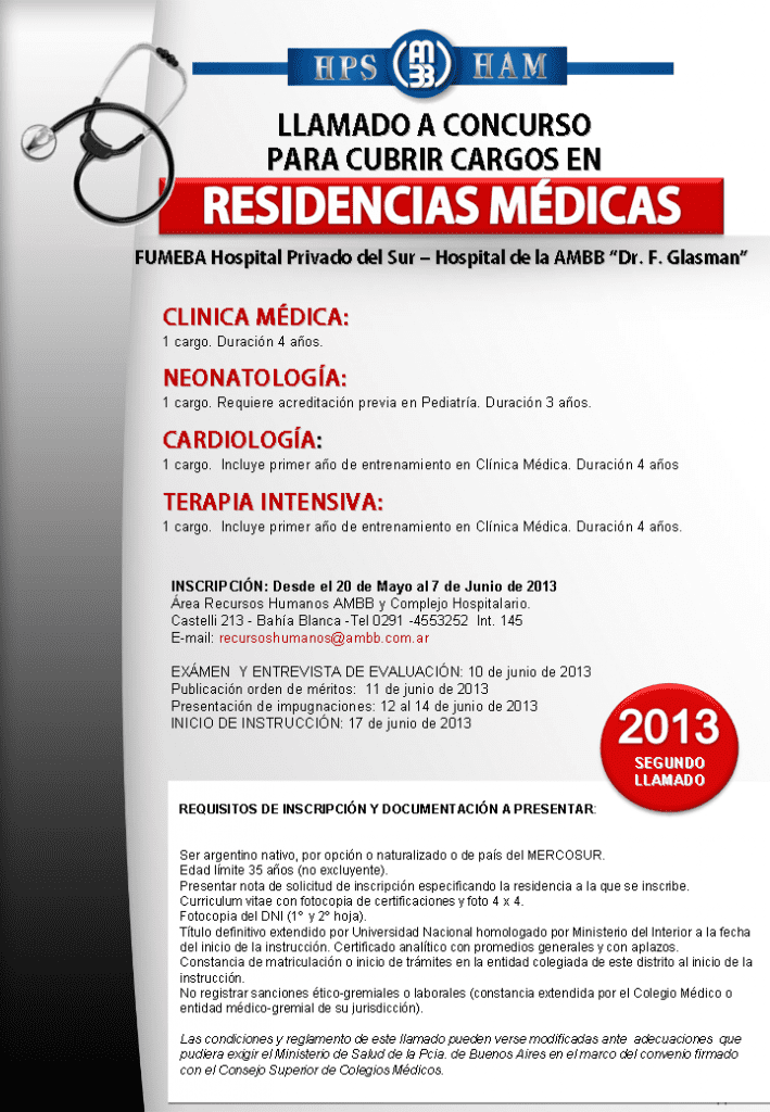 Llamado para cubrir Residencia pediatrica 2014 Acreditada por la Sociedad Argentina de Pediatría y Ministerio de Salud de la Nación.