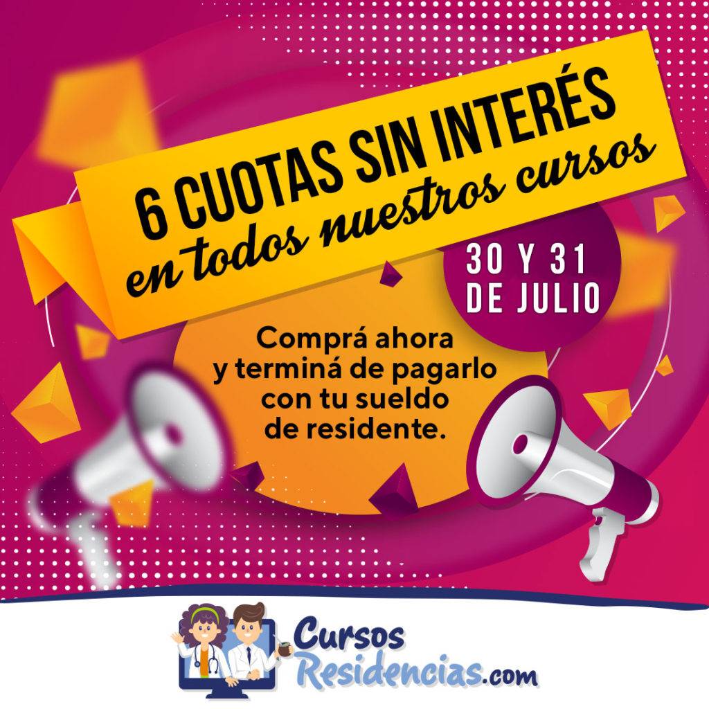 No queremos que te quedes afuera de la mejor preparación al examen de residencias, por eso, en CursosResidencias.com el 30 y 31 de julio tendrás 6 cuotas sin intereses en todos nuestros cursos.